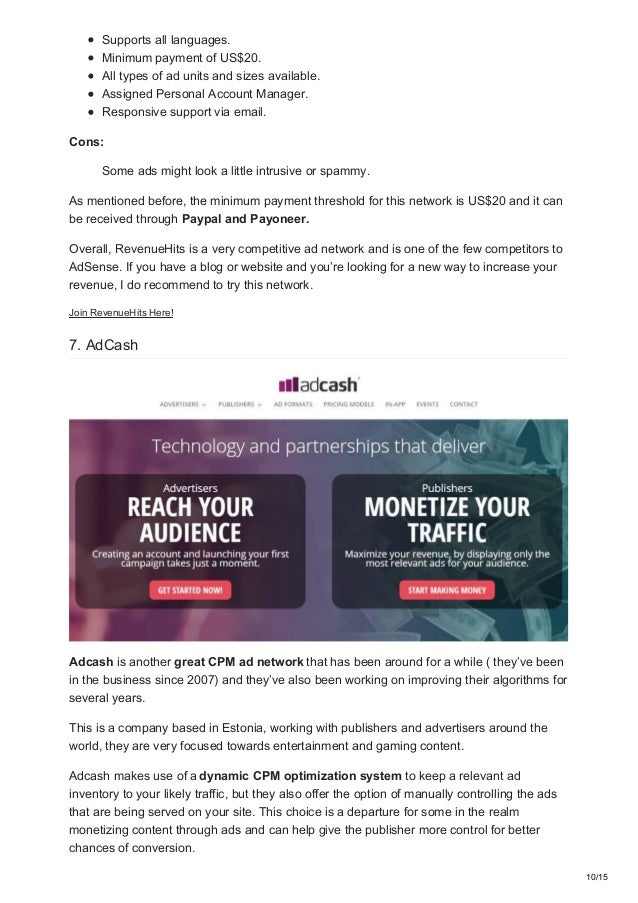 In a previous article here we talked about the top 10 best cpm ad networks this time were. Every advertiser of a cpm advertising network has their own set of rates revenue share and specific rules in accepting websites.