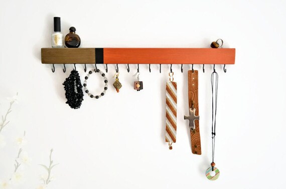 Jewelry Organizer Wall Necklace Holder Bracelet Holder Etsy Etsy Jewelry Holder Wall