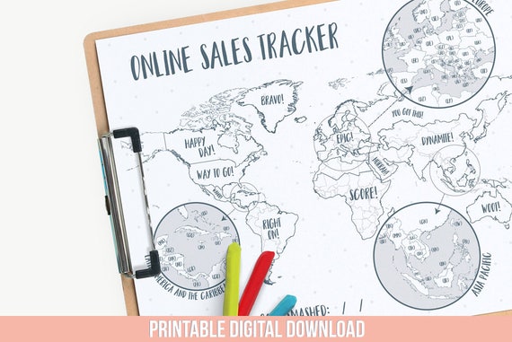 Sales Map Coloring Printable Page Etsy Sales Tracker Cha Ching Sales Map World Map With Countries Name Etsy Seller Goal Tracker Map Planner World Map With Countries Coloring Pages Etsy Sales Tracker