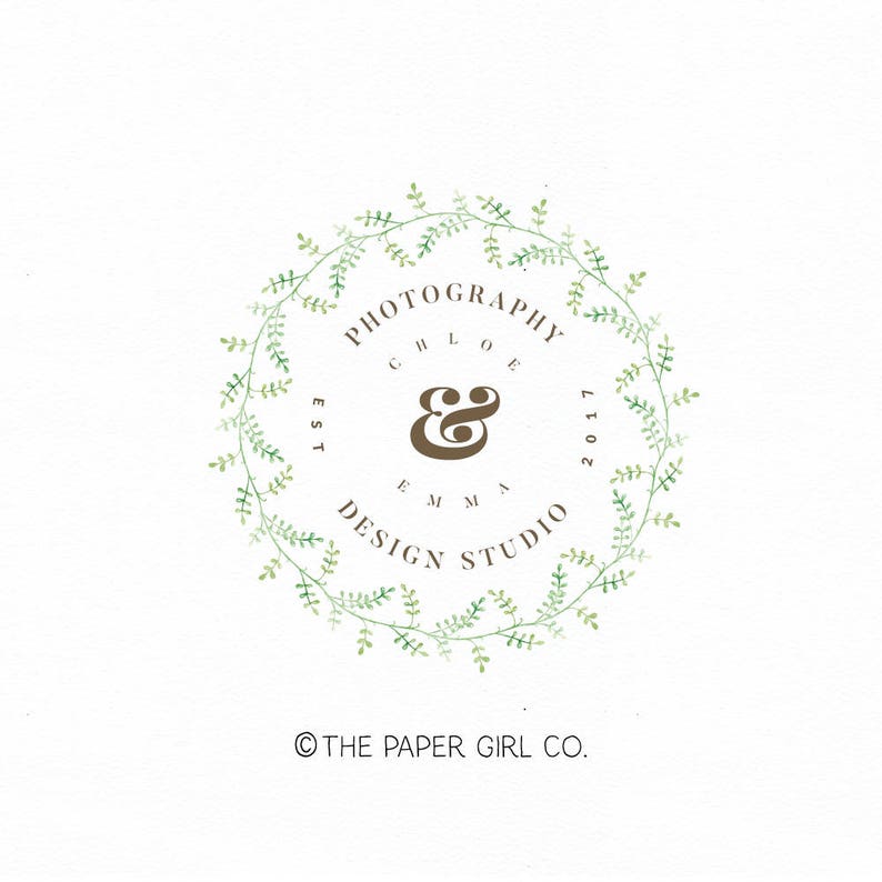 Photography Logo Leaf Wreath Logo Premade Logo Event Planner Etsy Etsy Shop Logo