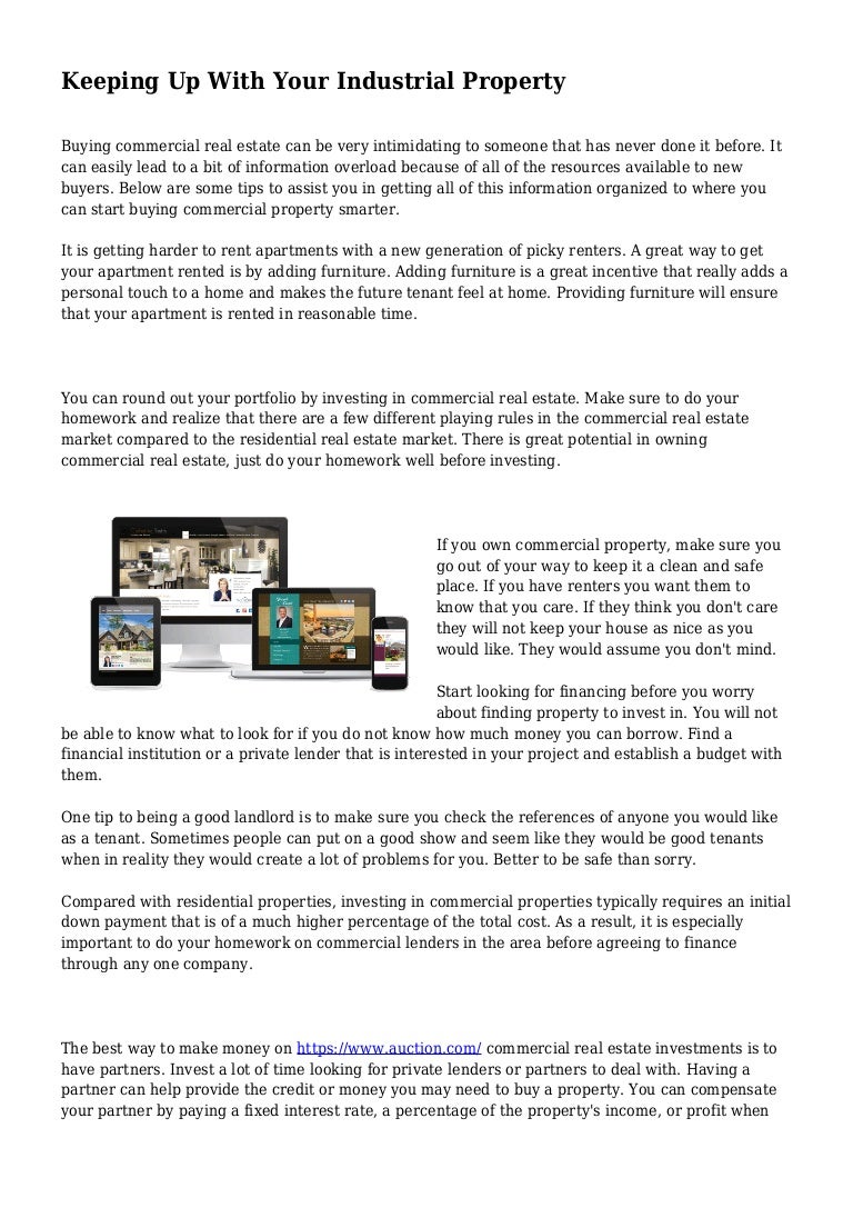 With this in mind commercial property should continue to be a profitable entity for owners nationwide. Basically those who wish to make money in real estate need to make a considerable commitment of time and capital to invest in real estate profitably. Commercial real estate investments can earn money through income or appreciation.