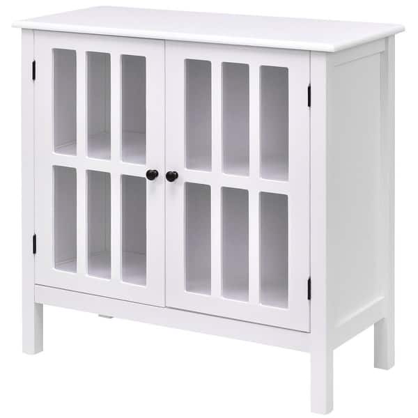 Shop White Wood Sideboard Buffet Cabinet With Glass Panel Doors On Sale Overstock 30682746 Long White Buffet Cabinet