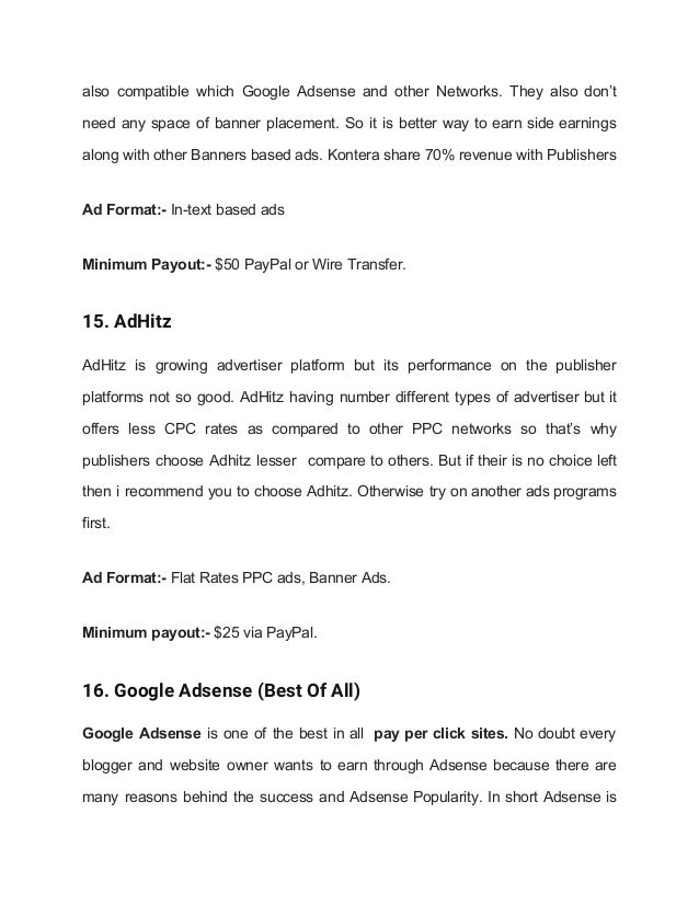 But a significant problem faced by advertisers and publishers is while finding the best pay per click sitesthere is much best pay per click sites are available in the market but some of them are paying quite low not as good as adsense.