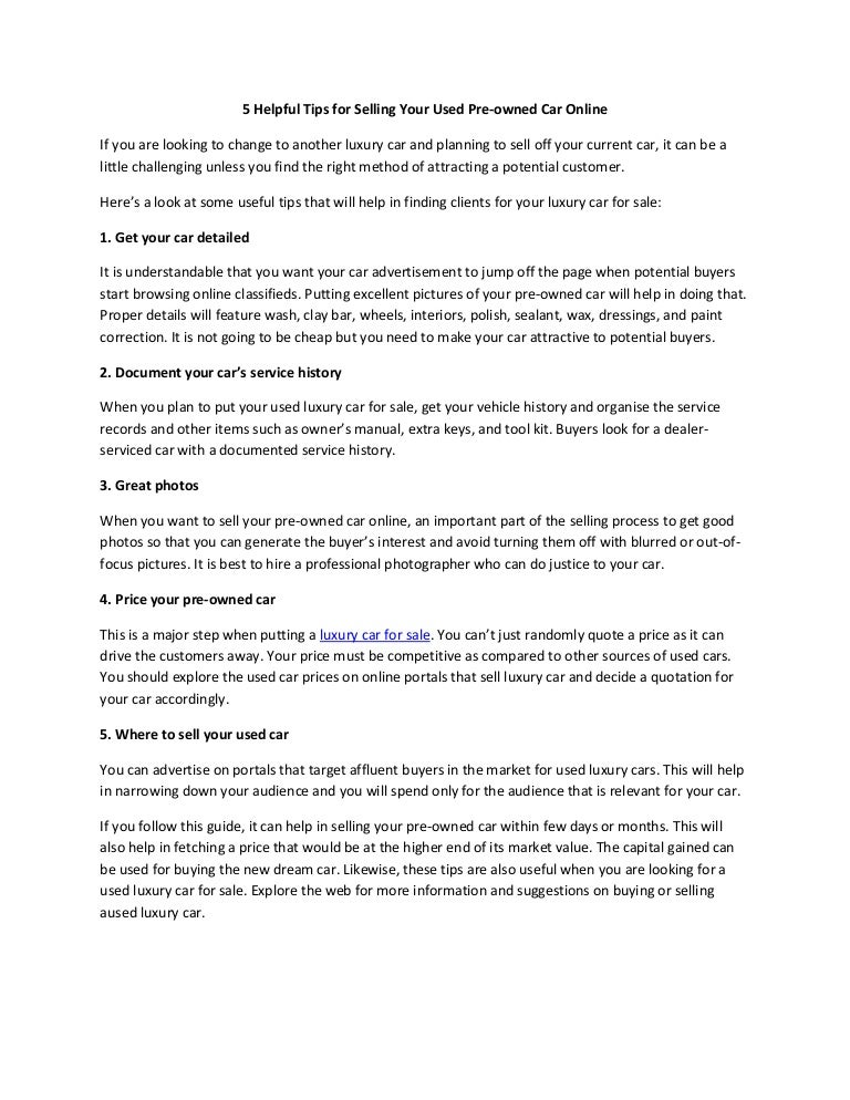 5 Helpful Tips For Selling Your Used Pre Owned Car Online Sell Your Car Online Quote