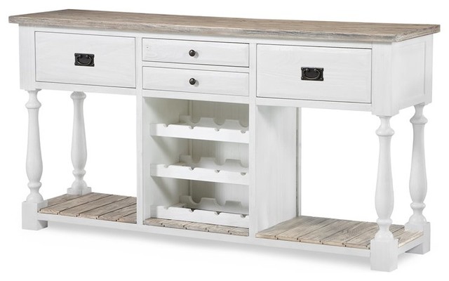 Catania Sideboard With Wine Rack Weathered Pine White Farmhouse Buffets And Sideboards By Sea Winds Trading White Buffet Table With Wine Rack